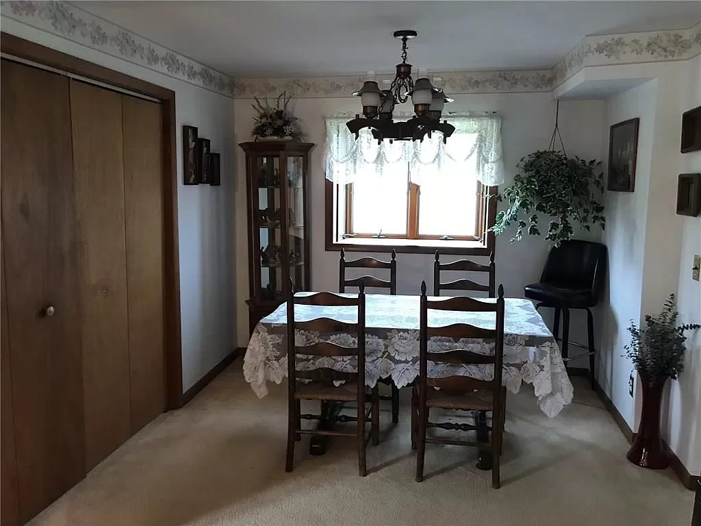 The dining room had a bedroom sized closet with huge bi-fold doors (and a missing handle) and dirty, old, beige CARPET.
