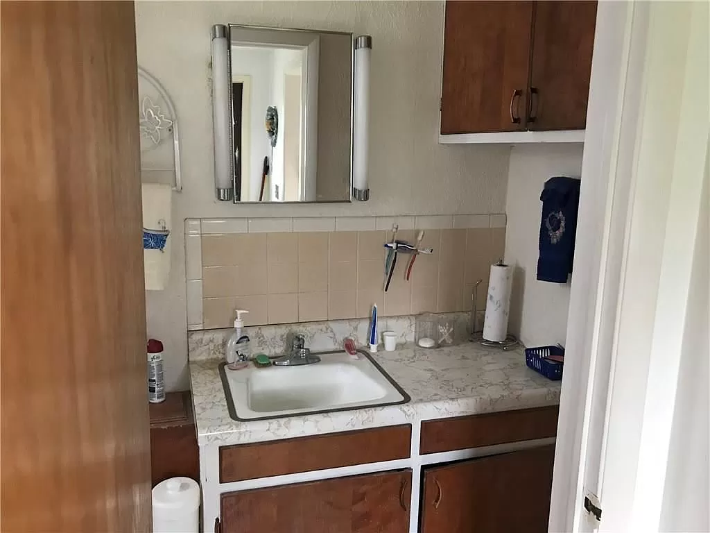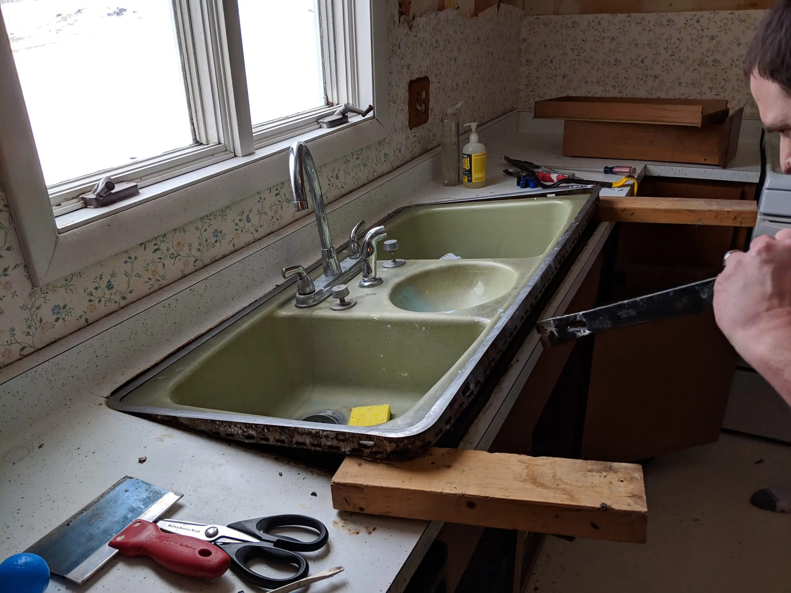 The cabinets were decades old, with years of grease and dirt caked on them. Some were broken with the doors falling off. They were dark brown and added to the overall drear felt in that part of the house.