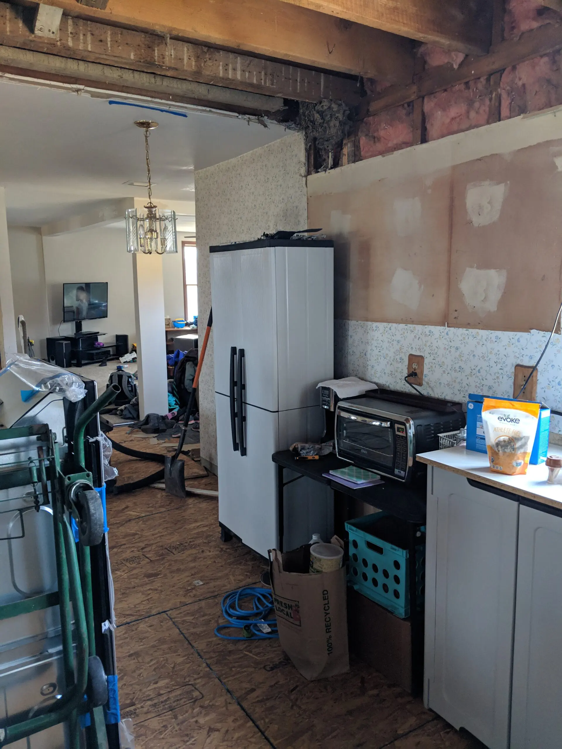 Can you imagine cooking in this mess? I had to – for FOUR MONTHS during this process. We set up a ‘kitchen station’ and moved it at least 4 times. (Pretty sure it was 5 times).
