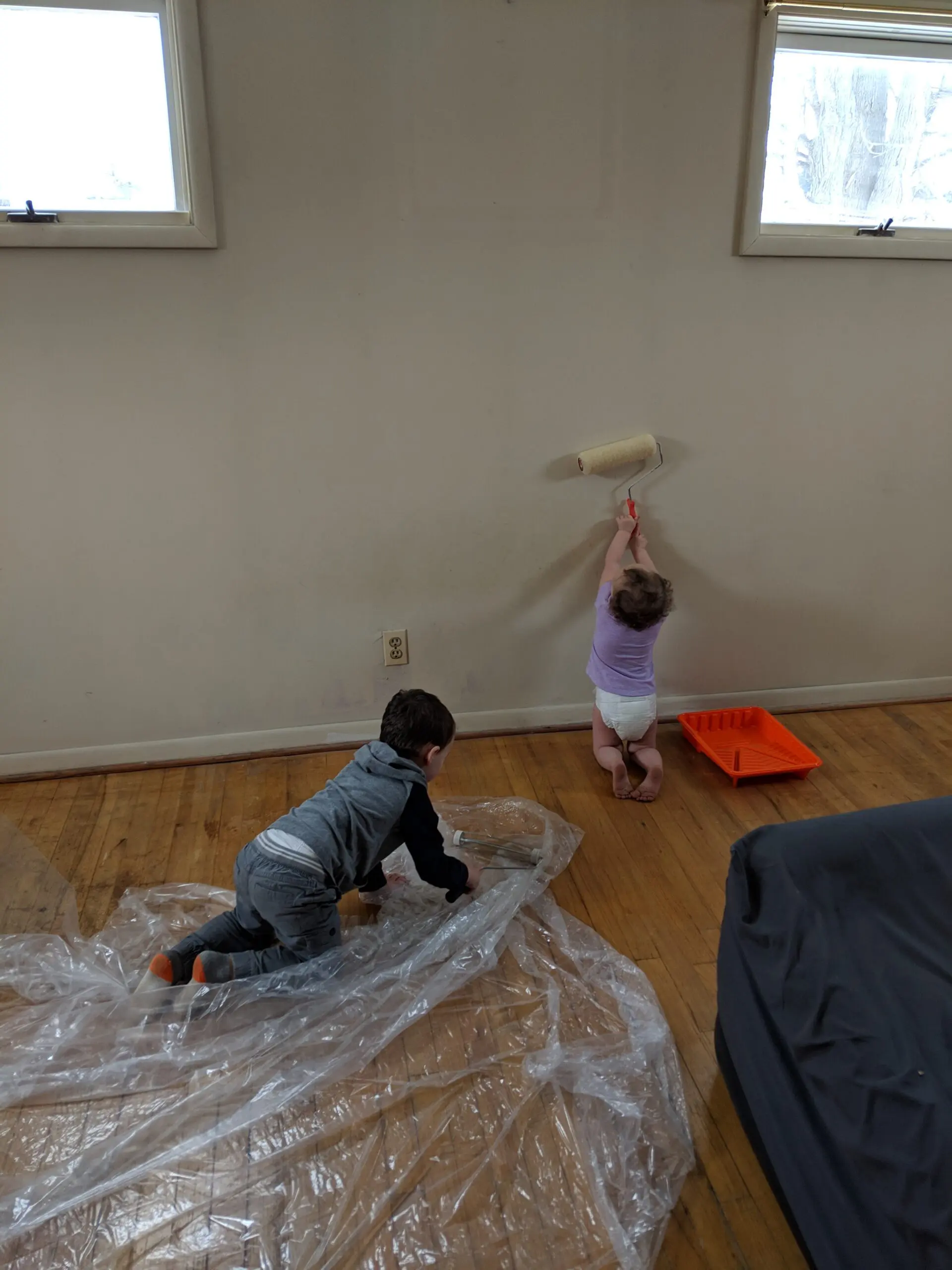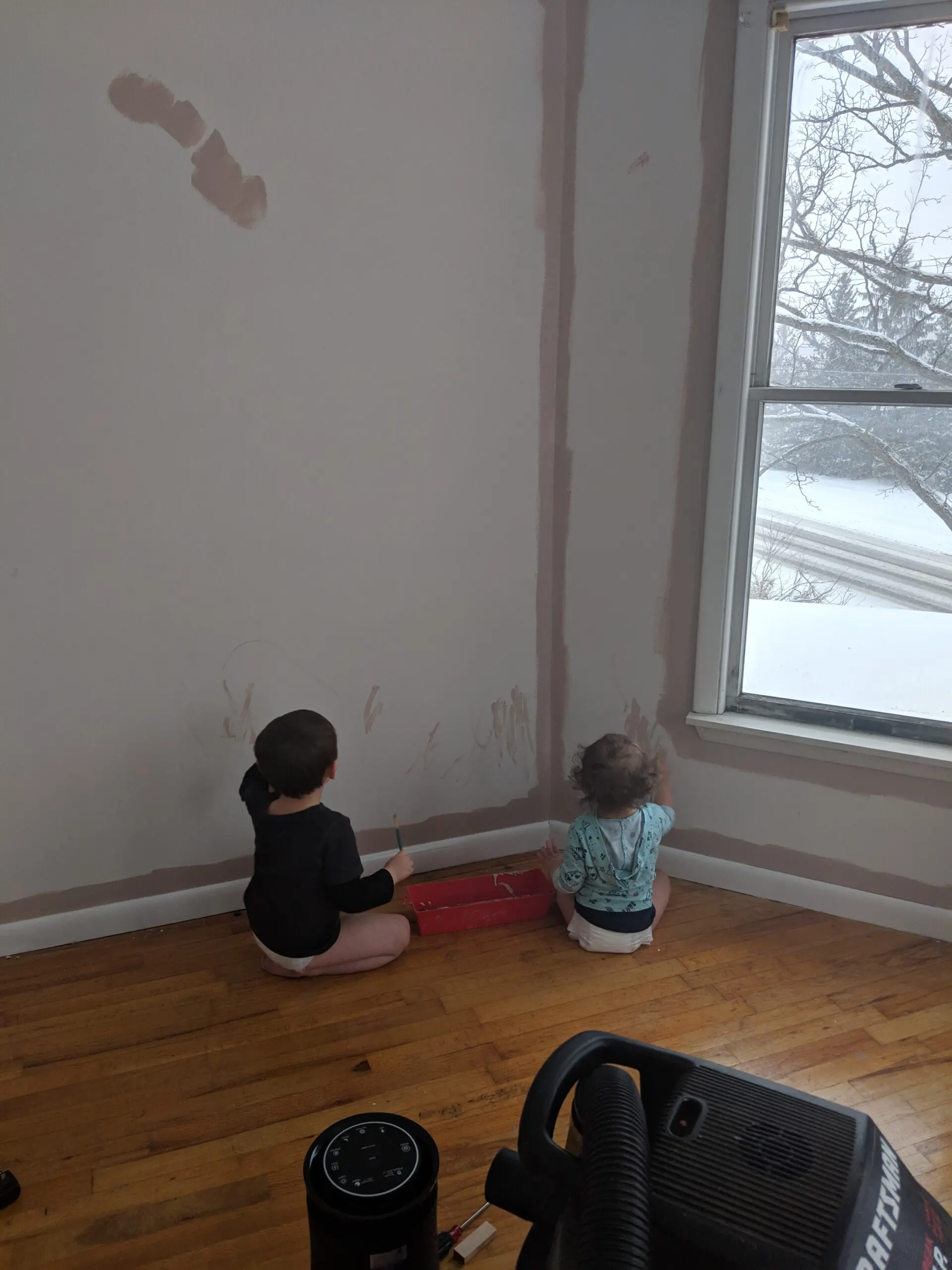 I painted and took care of littles while being super sick from stirring up the black mold the night before.