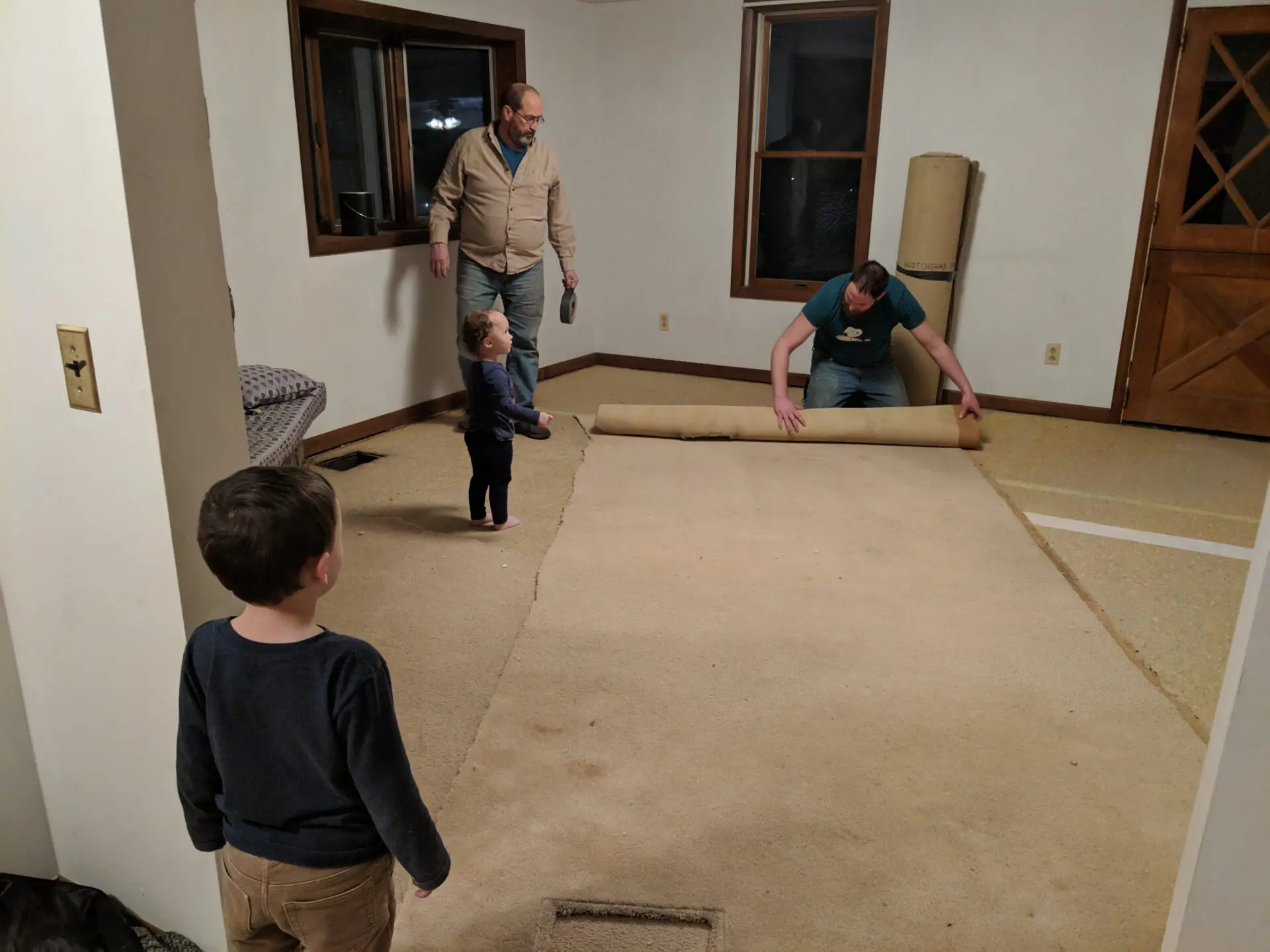 10PM, the guys were ripping up carpet from the living room and wrapping it in bundles.
